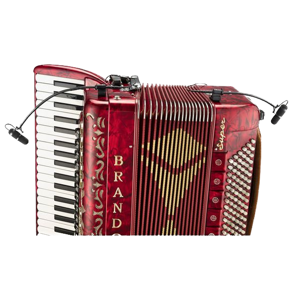 The DPA 4099 is specifically designed for the sound pressure levels of acoustic instruments like accordions. The 4099A includes a mounting piece that is designed to be mounted on the top of an accordion. This microphone is a condenser utilizing a super cardioid pickup pattern for max gain before feedback especially in the high mids (8Mhz) and lows (250 Hz). The frequency response of the 4099 incredibly ranges past 20Hz and 20 Mhz. This mic definitely does NOT lack clarity.