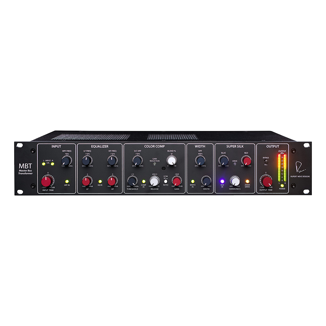 The MBT Master Bus Transformer by Rupert Neve Designs taps into the unparalleled audio transformer expertise of industry icon Rupert Neve, spanning six decades. This powerful and versatile audio processor offers an extensive range of options to enrich, empower, energize, expand, and entirely metamorphose your source material, establishing itself as the quintessential instrument for sonic enhancement. Whether applied to a complete mix, groups, stems, or individual sources, the MBT seamlessly combines renowned tonal excellence with an exceptionally adaptable array of controls for shaping your audio with precision.